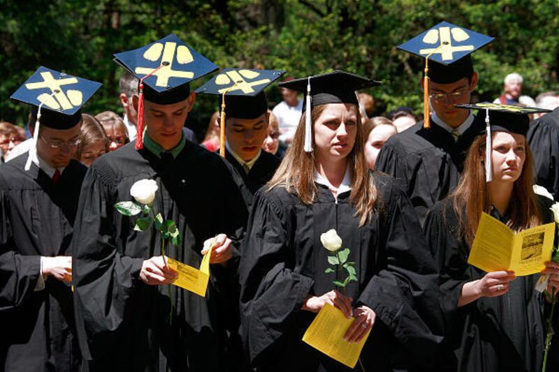 Kathleen Hession, a graduate from Iowa City, Iowa, said after the ceremony that the protests have overshadowed the students' academic achievements.