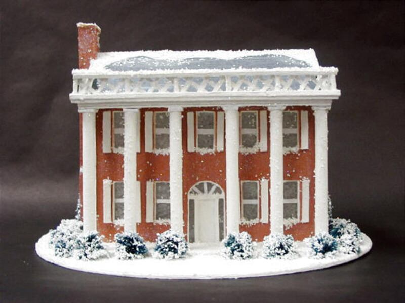 Christmas, he explains, conjures up thoughts of the old-time snow villages some people set up near train sets and on mantels; why not personalize those displays with a "real" home fitted for twinkling white lights and dusted with fake snow?