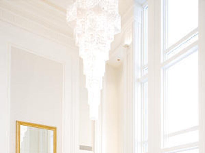 Construction materials came from all over the world, including exterior granite and pavers from China, interior limestone from Morocco and Egypt, woods from Indiana and Kentucky, and doors and veneer from the German Alps.