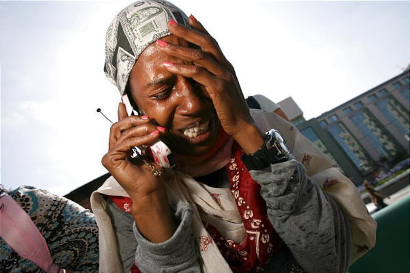 As word of his death spread, MTV switched its programming to play videos from Jackson's heyday. Radio stations began playing marathons of his hits. Hundreds of people gathered outside the hospital. In New York's Times Square, a low groan went up in the crowd when a screen flashed that Jackson had died, and people began relaying the news to friends by cell phone.