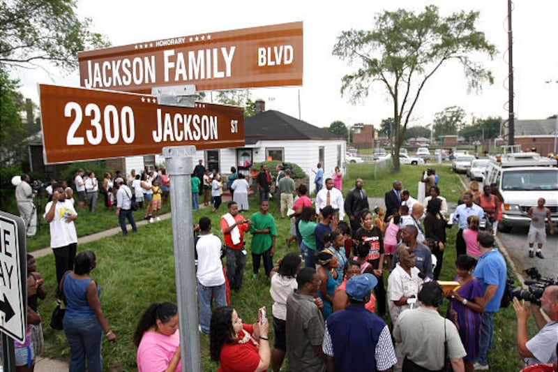 In his hometown of Gary, Ind., fans formed a prayer circle on the front yard of Jackson's modest childhood home and hundreds more crowded the street. Stuffed teddy bears and roses were left on the porch of the small white frame house, which now sits empty.