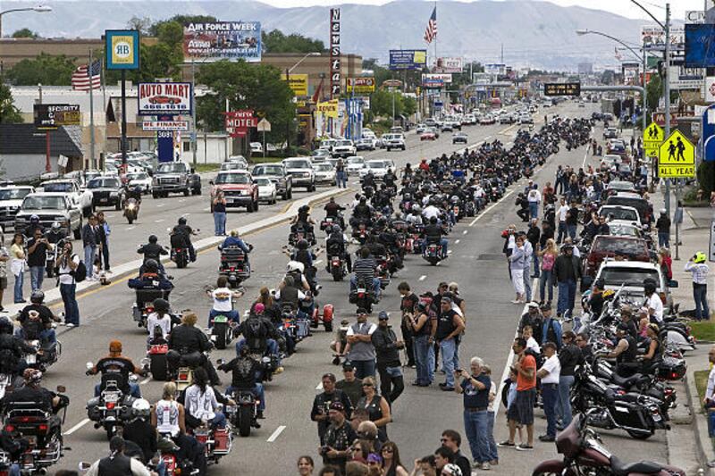 He rode on the back of Layton resident Kurtis Marsh's motorcycle on a special medical chair onto a concert stage in Wendover, Nev. He was greeted by thousands of motorcyclists from all over the Intermountain West who took part in the 58th annual Harley-Davidson Wendover Ride from Salt Lake City's Harley-Davidson store, 2928 S. State, to Montego Bay Casino in Wendover, Nev., all in an effort to raise money and awareness for the Muscular Dystrophy Association.