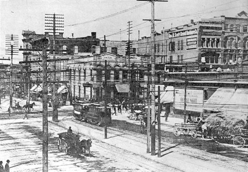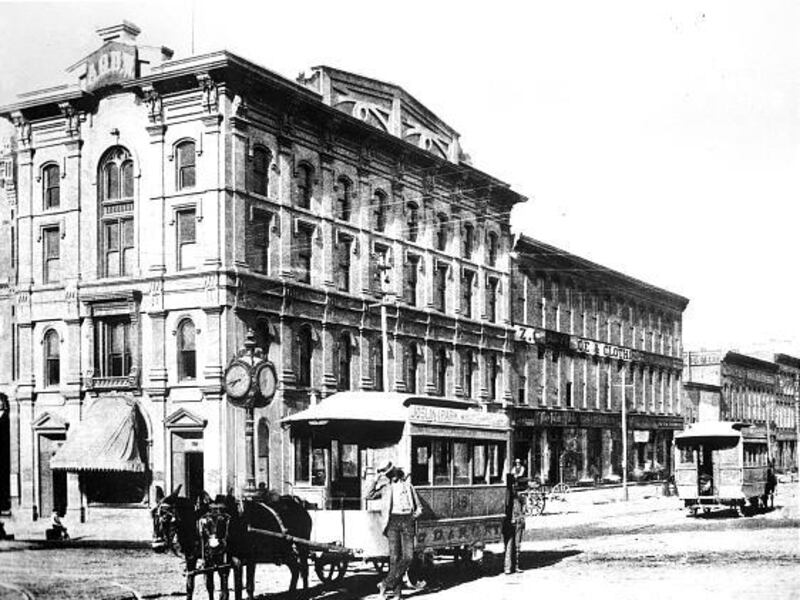 The photos, many taken near 100 South and Main Street from the 1860s to 1953, show the progress of Salt Lake from an isolated territorial outpost to a modern city. They also chart the progress of transportation from the initial days of the horse and buggy, to the mule-drawn streetcar system of the 1870s and to the Salt Lake Rapid Transit Company's electric railway installed in 1889.