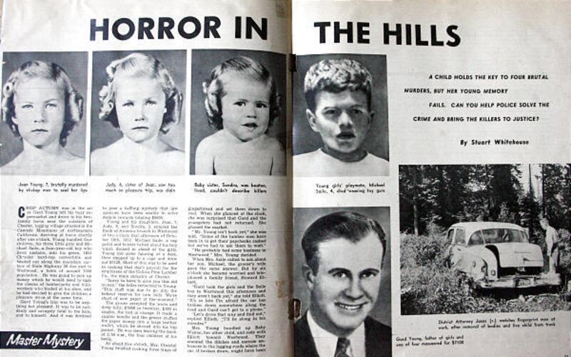 Sondra's sisters — Jean, 7 and Judy, 6 — were dead, as was 4-year-old Michael Saile, a neighbor boy who had come along for the ride. Sondra's father, Guard Young, had been bludgeoned and stuffed in the trunk on top of them.