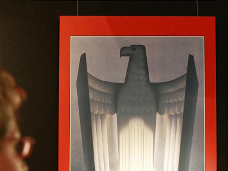 Visitors entering the show are confronted with an irritating cacophony of the composer's Brandenburg Concerto No. 1 interspersed with the staccato voice of chief Nazi propagandist Joseph Goebbels coming from a documentary playing in the gallery.