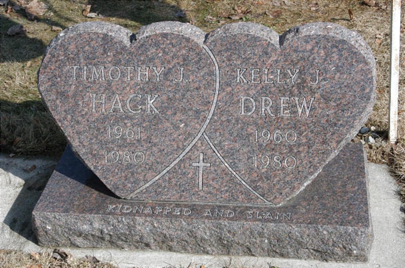 JEFFERSON, Wis. — Engraved beneath intertwined hearts that form a headstone at the grave site of Tim Hack and Kelly Drew are words that have haunted their small southeastern Wisconsin community for nearly three decades: "Kidnapped and Slain."