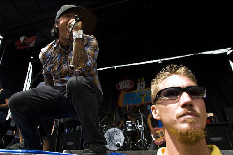 I Set My Friends On Fire, on the Hurley.com Stage, and Chiodos, on the main stage, both had frenzied circle pits that resulted in more than one bloody nose. At one point during Chiodos' lively set, the band attempted to break the record of 60 crowd surfers per minute. Whether such a record actually exists wasn't verified, but the audience became a sea of fans being lifted and passed around.