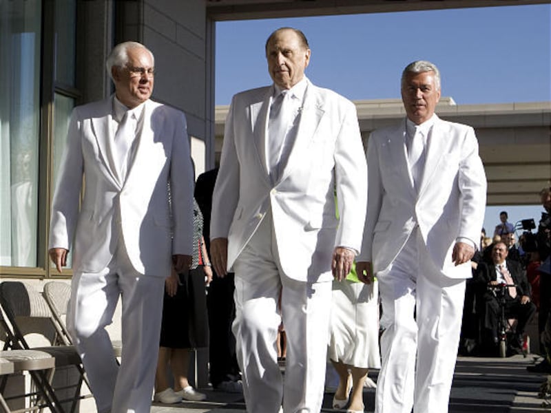 President Thomas S. Monson of The Church of Jesus Christ of Latter-day Saints stood front and center for all three.