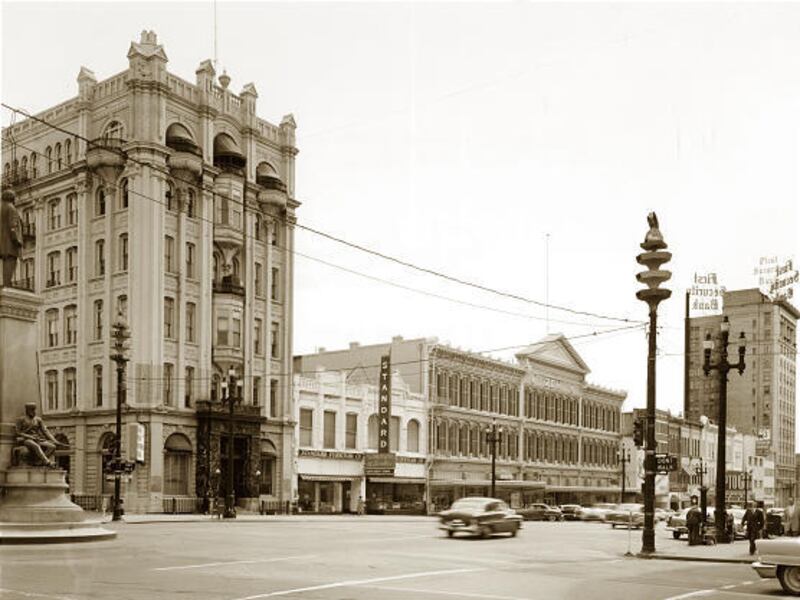 New building resumed after World War II; the Mountain States Telephone and Telegraph Co. rose where the theater once stood. "The block becomes a tightly knit commercial block, and the big problem was finding ways to accommodate the increasing number of cars that were coming downtown," said Morrow.