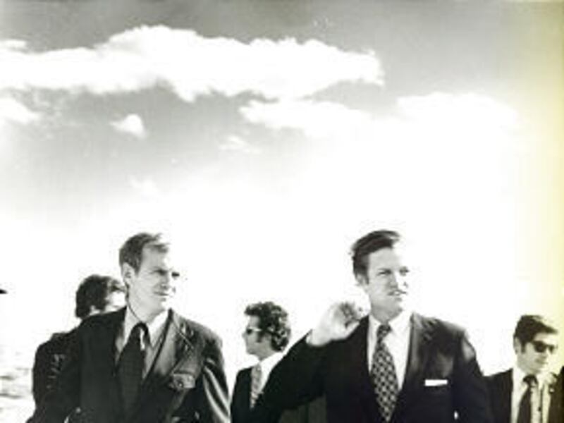 "It was getting dark, and he really needed help, so he yelled to one boat, 'Hey, I've got Ted Kennedy and Robert Redford in my boat.' The reply in the darkness said, 'Yea, and I've got Richard Nixon and Spiro Agnew in mine,' " Steve Owens said.
