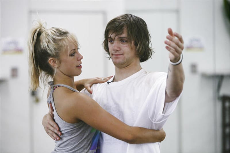 "None at all," she said with a laugh. "Actually, his experience totally hinders him because everything that he was taught in snowboarding is completely opposite of dance. Like his posture — he's so used to being hunched over and it's completely opposite of what you have to be for dancing."