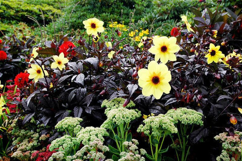 Even during a break on a somewhat drizzly summer day, the bountiful blooms in Dunedin's civic garden are spectacular. Many plots are beautifully grouped, often among low hedges, like a gigantic gift basket.