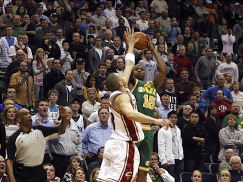 Unlikely Gaines hit the game-winner at the buzzer, allowing the Jazz to overcome second-half injuries sustained by both starting point guard Deron Williams and starting small forward Andrei Kirilenko, and beat the Cavaliers 97-96 in a late-starting, TNT-televised game at sold-out EnergySolutions Arena.