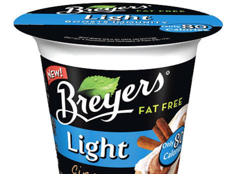 Breyers Light Yogurt. Strawberry Banana Split, and Cinnamon Bun. 69 cents to $1.19 per 6-ounce cup.