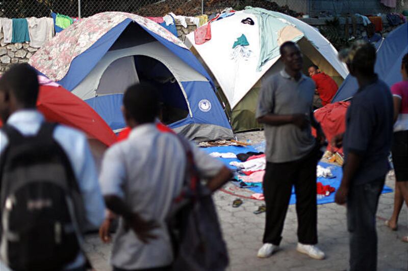 The nightly devotional calms the restlessness of what amounts to a village that sprang up around the church after the Jan. 12 earthquake. Petionville was one of the hardest-hit areas in the country. About 600 tent cities or makeshift communities are sprinkled throughout the region. About 1 million Haitians, or 1 in 9, were displaced by the earthquake.