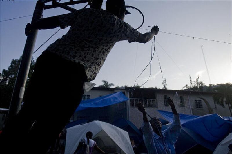 PETIONVILLE, Haiti — A momentary calm fell over the Petionville Ward Chapel grounds as homeless Haitians raised their voices in song and prayer to close another day.