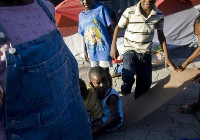 "The children are happy," said ward member Emmanuel Exilus, adding his house isn't damaged but he's staying at the church to help. "Here is as a camp for them to play and to spend their time."