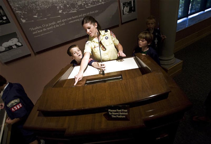 And, he noted, the pulpits aren't the same shape and design as modern-day podiums — in fact, they're not podium-like at all, and he pointed to the exhibit's replica tabernacle rostrum.