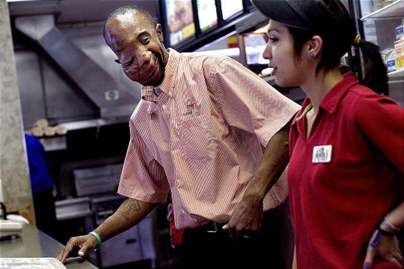 Simpson is the general manager of the Arby's in Bountiful. Before that, he delivered pizzas. During one of those deliveries, a man noticed Simpson and offered to pay for cosmetic surgery.