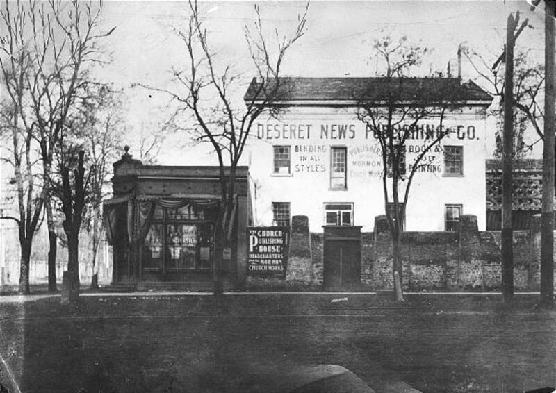 Less than a year later, in 1851, the paper (and press) moved a few yards to the west into the Deseret Store Building, a three-story adobe structure on the northeast corner of South Temple and Main Street, where the Joseph Smith Memorial Building stands today. The biggest problem with that location was keeping the store customers from messing with the press.