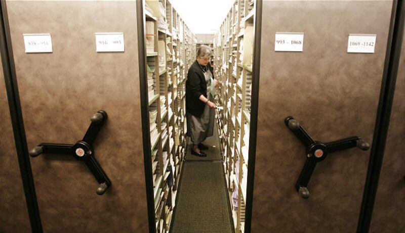 For choir members, the next stop is the music library, where they pick up and turn in music in a locker that also has their number on it. There are 16 different sections: first soprano, second alto, and so forth. "So, every Sunday, we are dealing with about 2,000 pieces of music," says Debbie Martin, a former choir member who now serves as a librarian. "But each section has a volunteer to help collate the music."