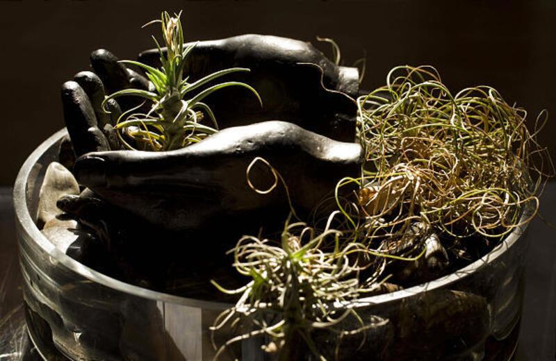 These bromeliad air plants at the Shop at Studio Dan Meiners thrive in terrariums because of their easy maintenance. All they need is light and water. Ferns also do well, though broad-leaf tropical plants do not.