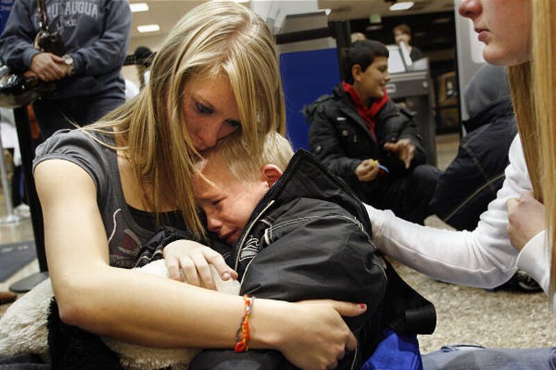 It came after the family met the trio at the Salt Lake City International Airport, when they stood, awkwardly at first, unsure how to communicate with one another.