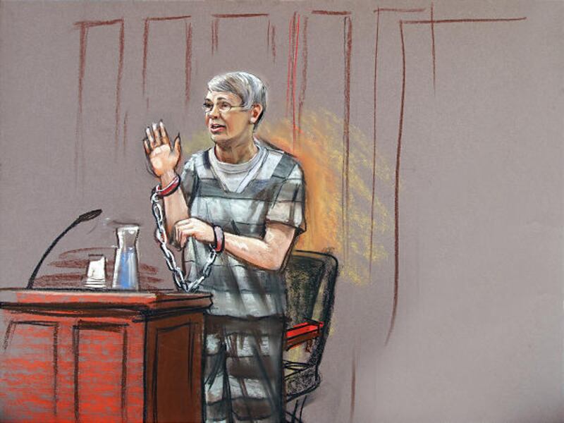 Barzee, 64, was flown in to testify from Texas where she is serving a 15-year term in federal prison. She pleaded guilty last year to charges related to Smart's kidnapping. The plea came after a state judge ordered her to undergo forced mental health treatment at the Utah State Hospital to restore her competency to stand trial. She testified Thursday in handcuffs and shackles, and wearing a gray- and-white-striped prison suit.