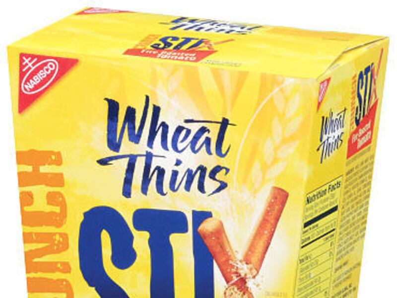 Nabisco Wheat Thins Crunch Stix Snacks. Honey Wheat, and Fire-Roasted Tomato. $3.49 per 8-ounce box.