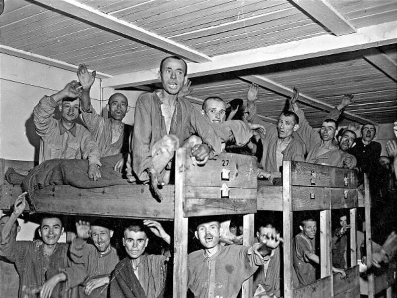 The men there were not just Jews, but prisoner/workers from many occupied territories. "They slept four to a bunk. They were all nearly naked and so emaciated. It was just terrible. There was a hill they had to walk up to work, and if they couldn't make it, they just laid down and died. There was a shower where it turned out they were gassed."