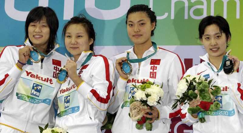 Meanwhile, China set swimming's first world record of 2010, winning the women's 800 freestyle relay.