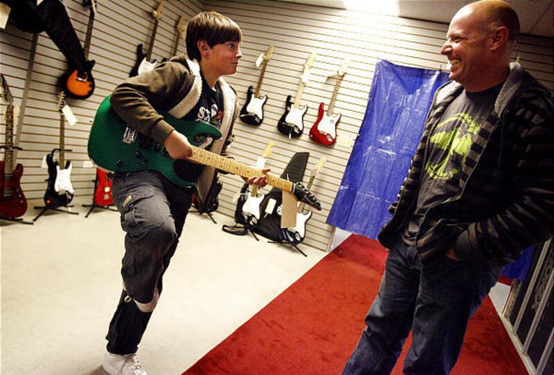 MURRAY — Mike McQuilkin couldn't stop smiling Saturday about the electric guitar he'd just purchased at the School of Rock Foundation's first-ever Music Swapalooza.