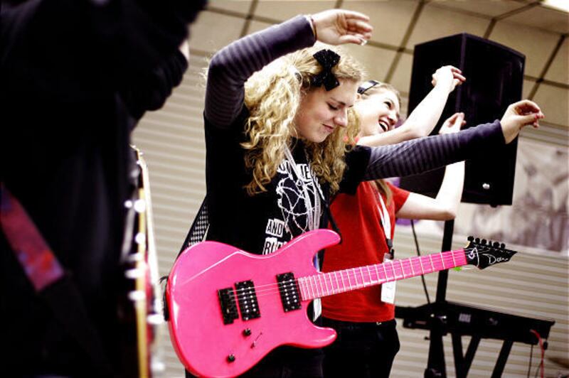 Would-be buyers were able to duck in to "quiet rooms" to test out the instruments. But there was no shortage of music, with School of Rock students performing throughout the day.