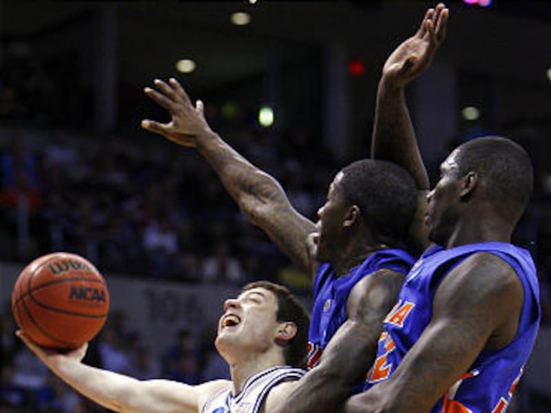 After Florida's Vernon Macklin hit 1-of-2 free throws, Fredette slipped through the paint to hit a left-handed banker with 26 seconds remaining to tie the game 75-75. The Gators worked for the final shot, and Parsons got a pretty good look but his 10-foot jumper from the right wing with two seconds left bounced back toward him.