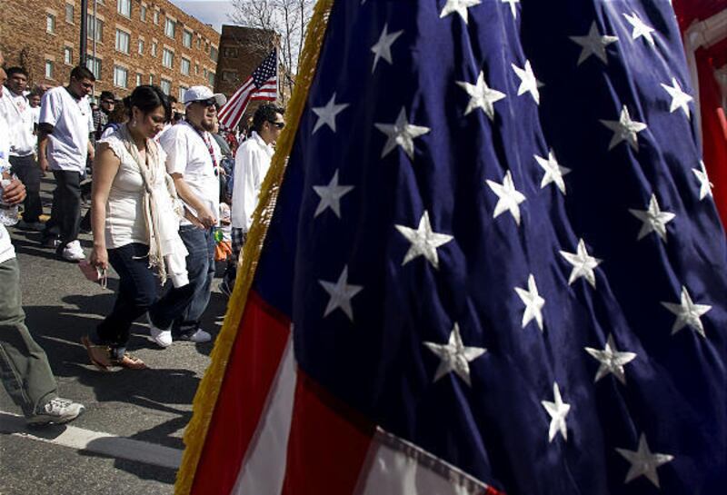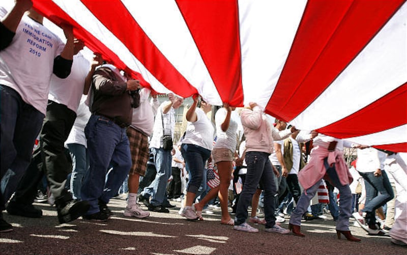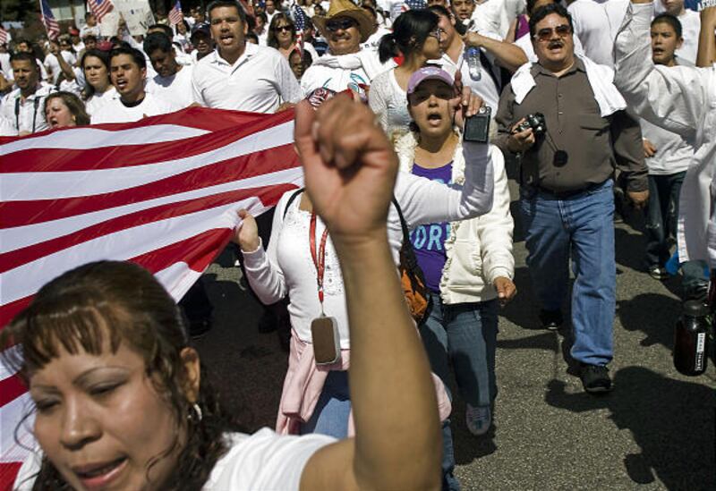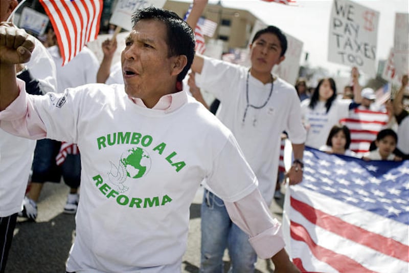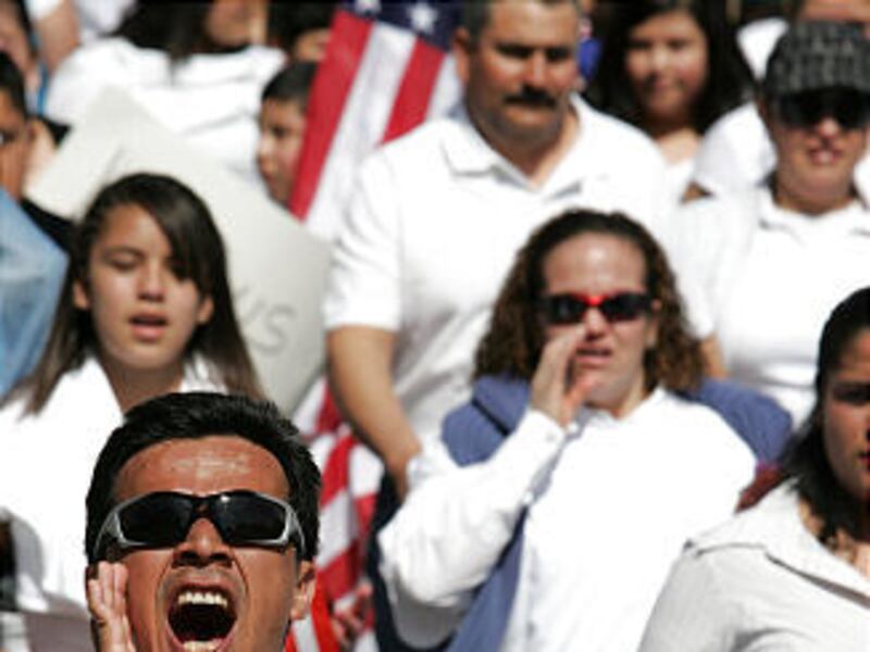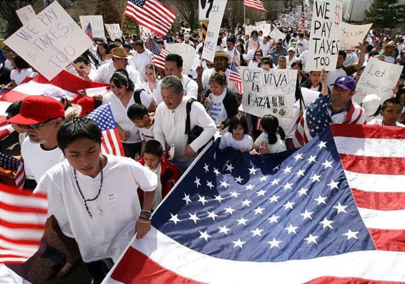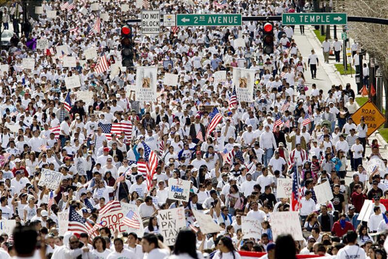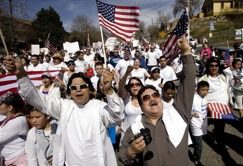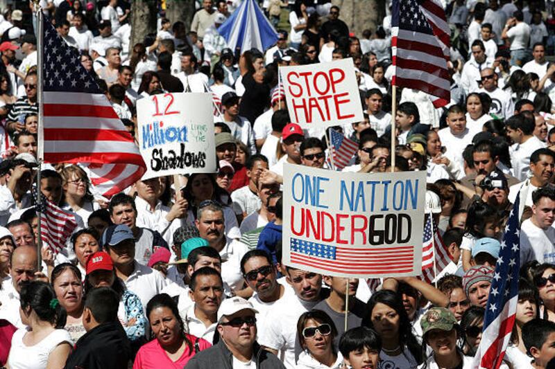 Anti-immigrant sentiment was limited to a handful of people at the fringes of the crowd registering their opposition to amnesty for illegal immigrants.