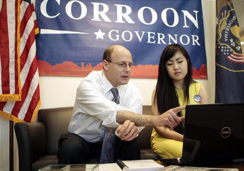 Corroon was already busy dialing for dollars at his campaign headquarters on a recent weekday afternoon. The mayor had enough success that Dunn had to hand over a special treat — a piece of beef jerky from a stash inside a cabinet jammed with snacks. "Like a dog," Dunn joked.
