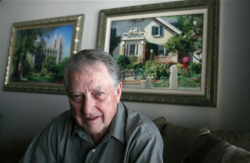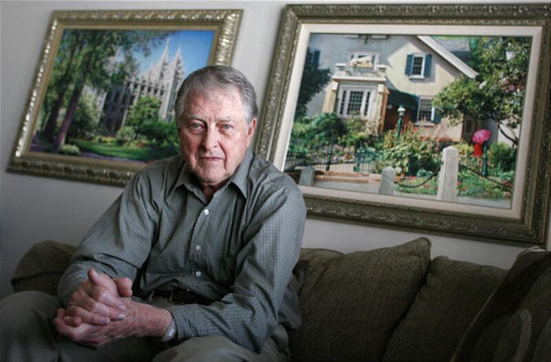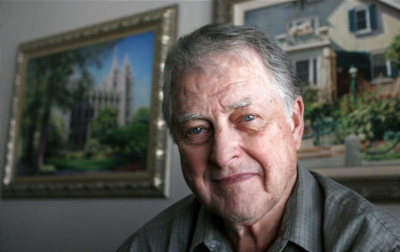 The painting will hang in the council room of the Salt Lake Temple next to its 14 predecessors, all but one painted by the 82-year-old Clawson.