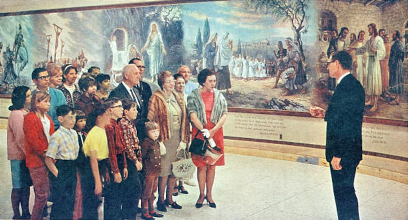 Clawson also painted the 66-by-14-foot mural titled "Go Ye Therefore" that resides in the lobby of the Church Office Building.