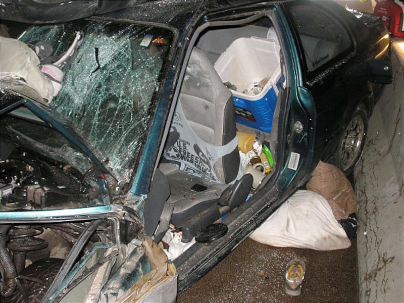The Suburban hit the car and pushed it into Aguilar, who was then thrown off the bridge and fell 103 feet to his death.