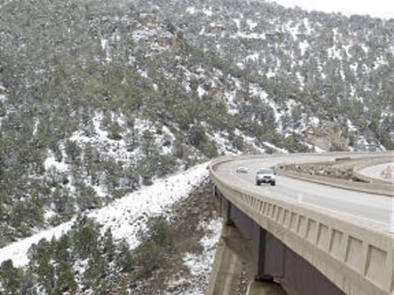 The snow-covered site west of Richfield and about 11 miles east of I-15, is located in a mountainous area with winding roads dotted with several drop-offs and bridges. "Icy road" signs warn motorists before every bridge.