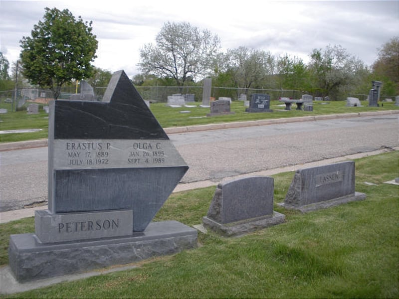 Richelle Hawks on Ufo .com posted on May 24, 2009, what appears to be the best explanation of the bizarre inscription — that the surviving husband was not only eccentric but somehow blamed police for his wife's death, even though her official newspaper obituary stated she died of natural causes in a Salt Lake hospital.