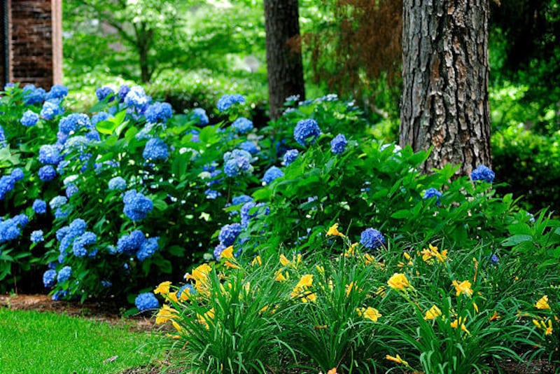 As I mentioned, the Stella d' Oro is well suited to massing, and can be grown in bold drifts with perennials, annuals or and colorful shrubs like the hydrangea. If the hydrangea idea doesn't work in your situation try growing Stella d' Oro to the rear of a bed with Purple Wave petunias planted in front.