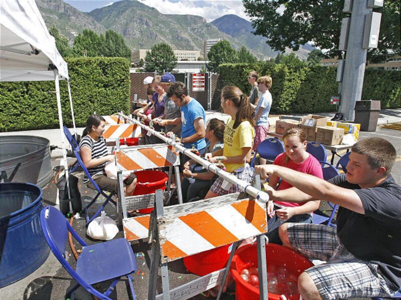 PROVO — If you can't entice them with smaller class sizes, shorter lines and less traffic, try 120,000 water balloons in the "Cougar Cooldown," BYU's attempt at the world's largest water balloon fight. BYU is hosting its first summer mega-activity Friday to encourage students to stay in Provo beyond April.