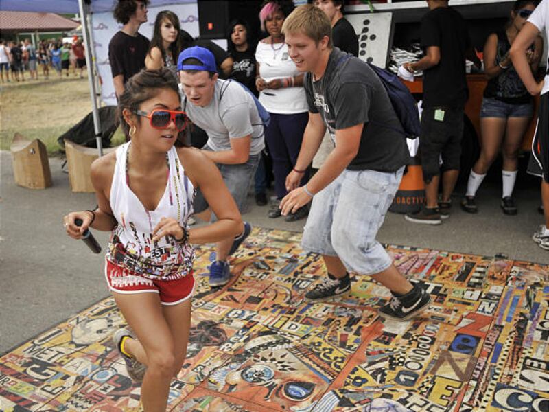 The feeling around their booth — or rather, their big, orange van — at the Utah State Fair Park, was casual. A disc jockey sat inside the van, spinning tunes. In front, Girard and his colleagues started up a dance party. When that got boring, they rounded up teens for a series of laugh-inducing games, relays and contests. Through it all, they shared their message.