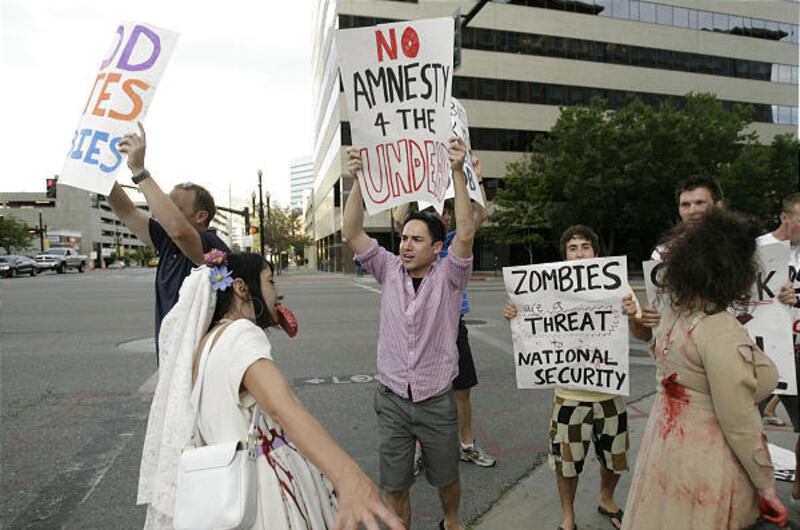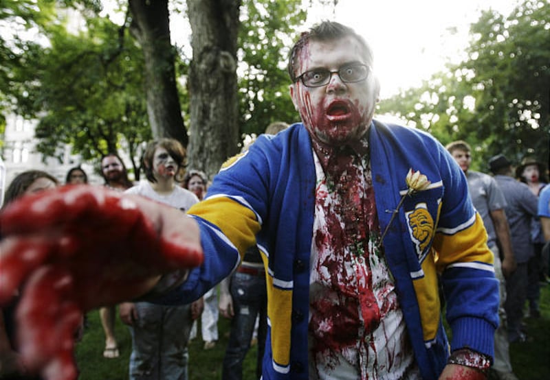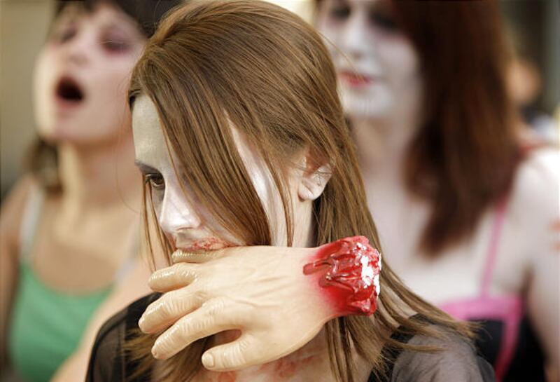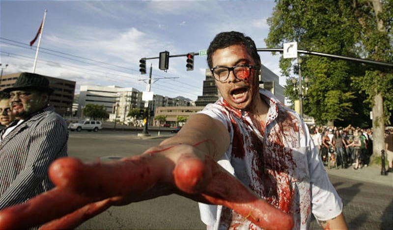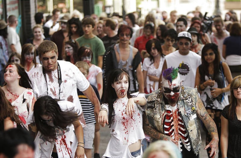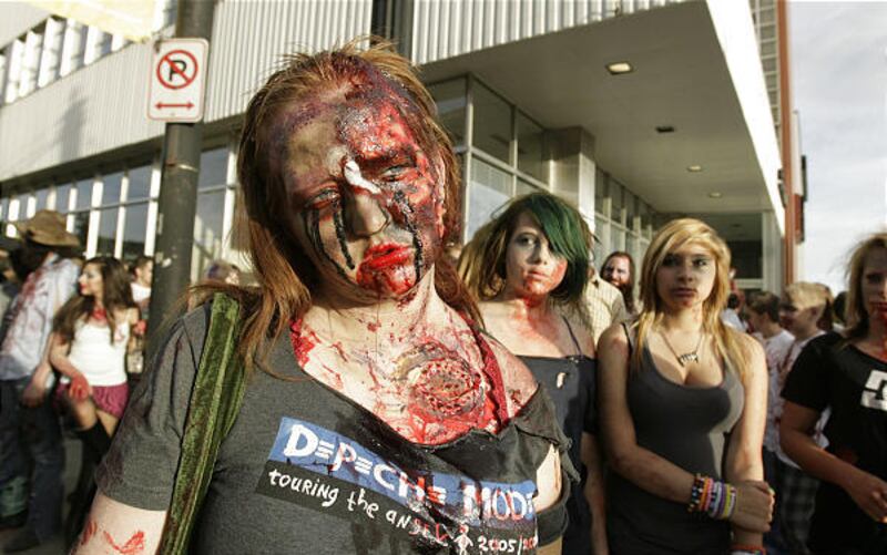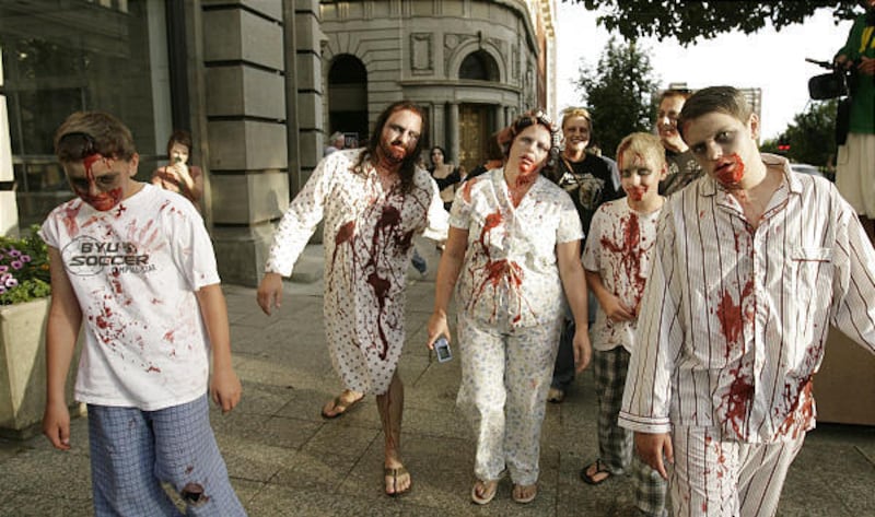 The third-annual Zombie Walk in downtown Salt Lake City took place Sunday. Participants made their way around downtown in a somewhat orderly fashion, with many limping along the way.