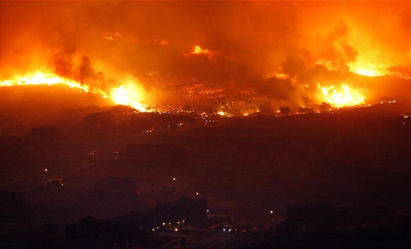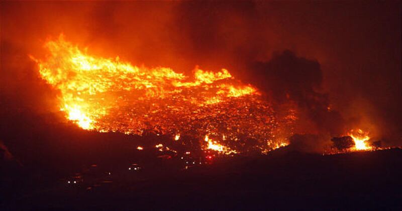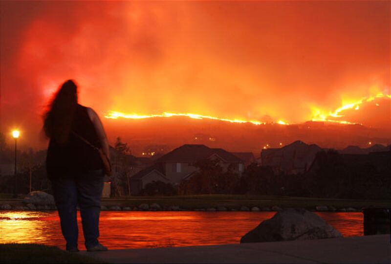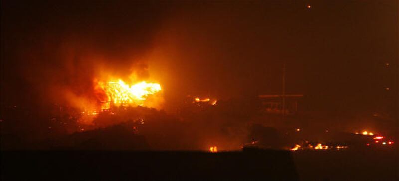 "We can see the flames at the top of the hill," said Faith Ching shortly before the fire reached some of the houses. "I don't want to take a chance. Its really scary."