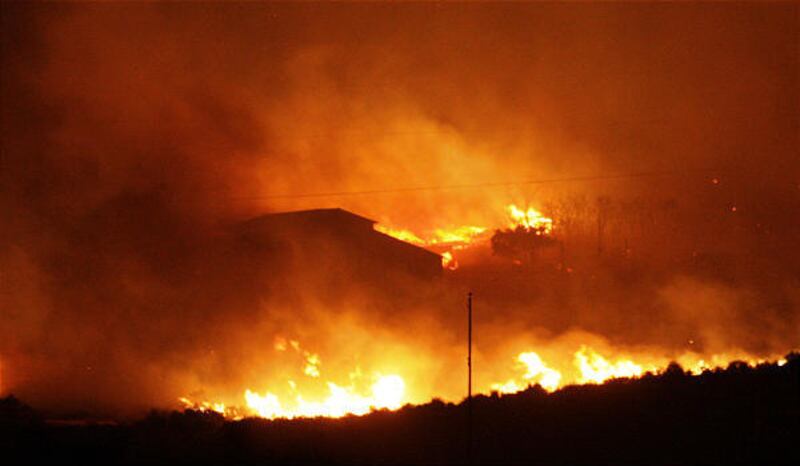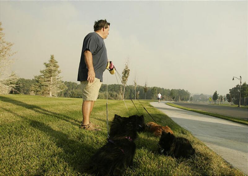Greg Wood said his neighbor's brother owns livestock and initially defied an evacuation order. Once he decided that he'd better leave, he had to drive through a 20-foot wall of flames to get out, Wood said.
