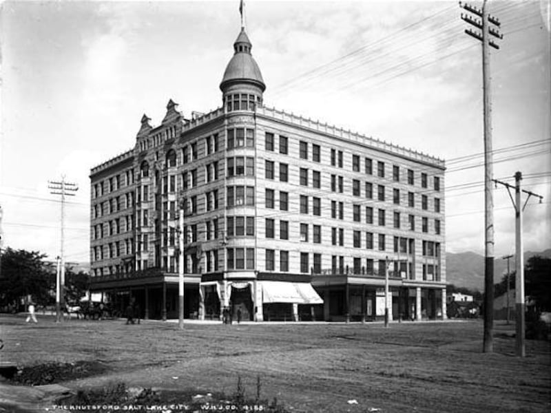 The Knutsford Hotel, on the northeast corner of State Street and 300 South, is probably best known as the place where the Salt Lake Chamber (then called the Commercial Club) was organized in 1902. Whenever prominent people came to Salt Lake City, in the early 1900s, their names were listed in the newspaper's society pages as staying at the Knutsford.