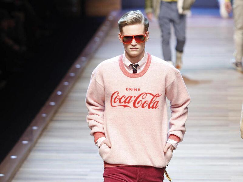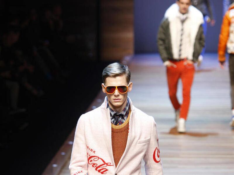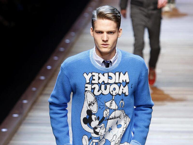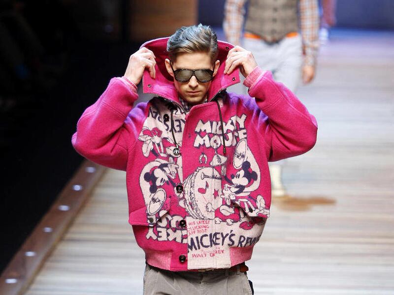 MILAN — The devilish duo Dolce and Gabbana showed the most fun-filled collection of the current menswear winter fashion shows, offering funky outfits with such 1960's logos as Coca Cola advertising and Mickey Mouse cartoons.