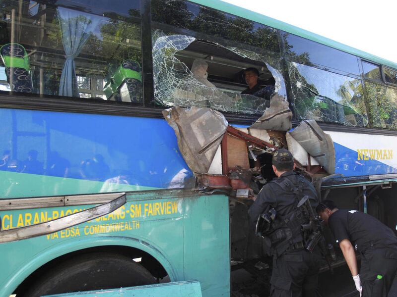 Metro Manila police chief Nicanor Bartolome said an improvised explosive device apparently went off under a passenger seat in the middle of the bus.